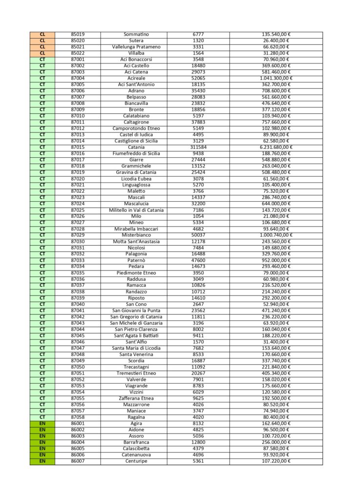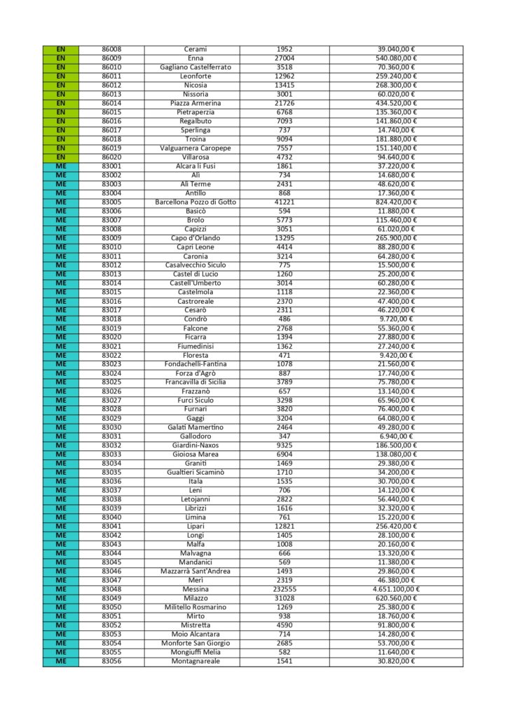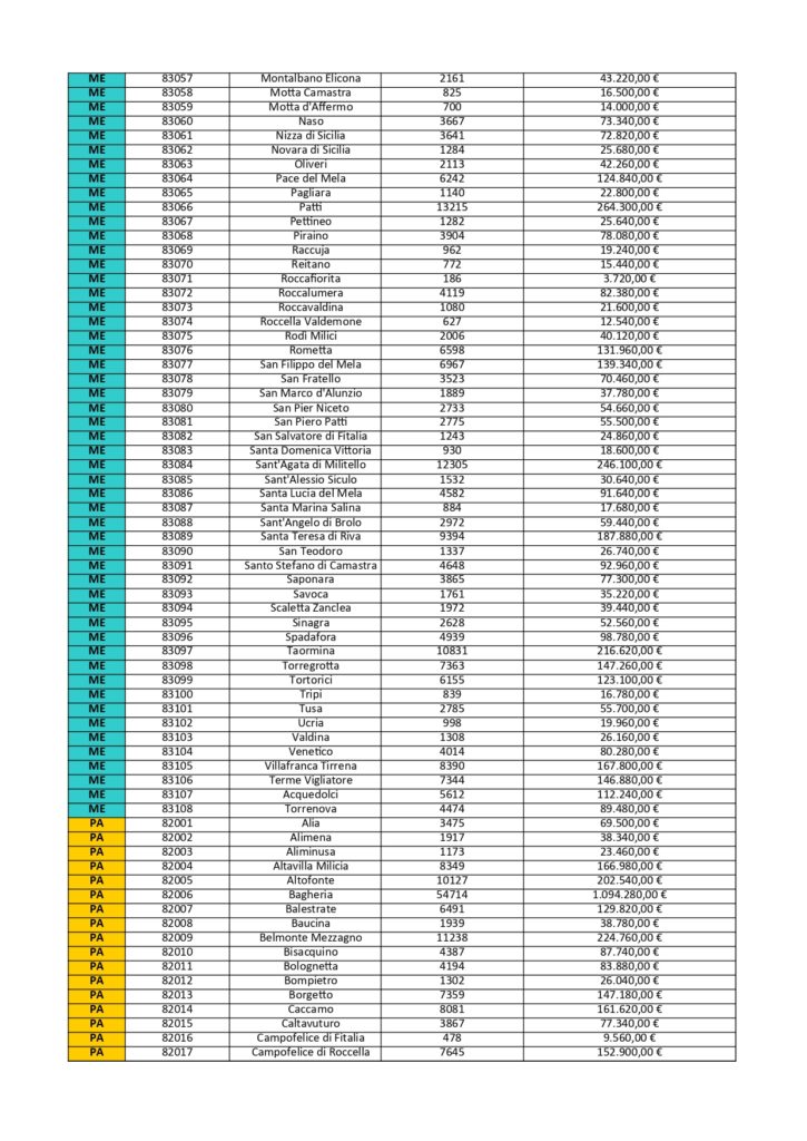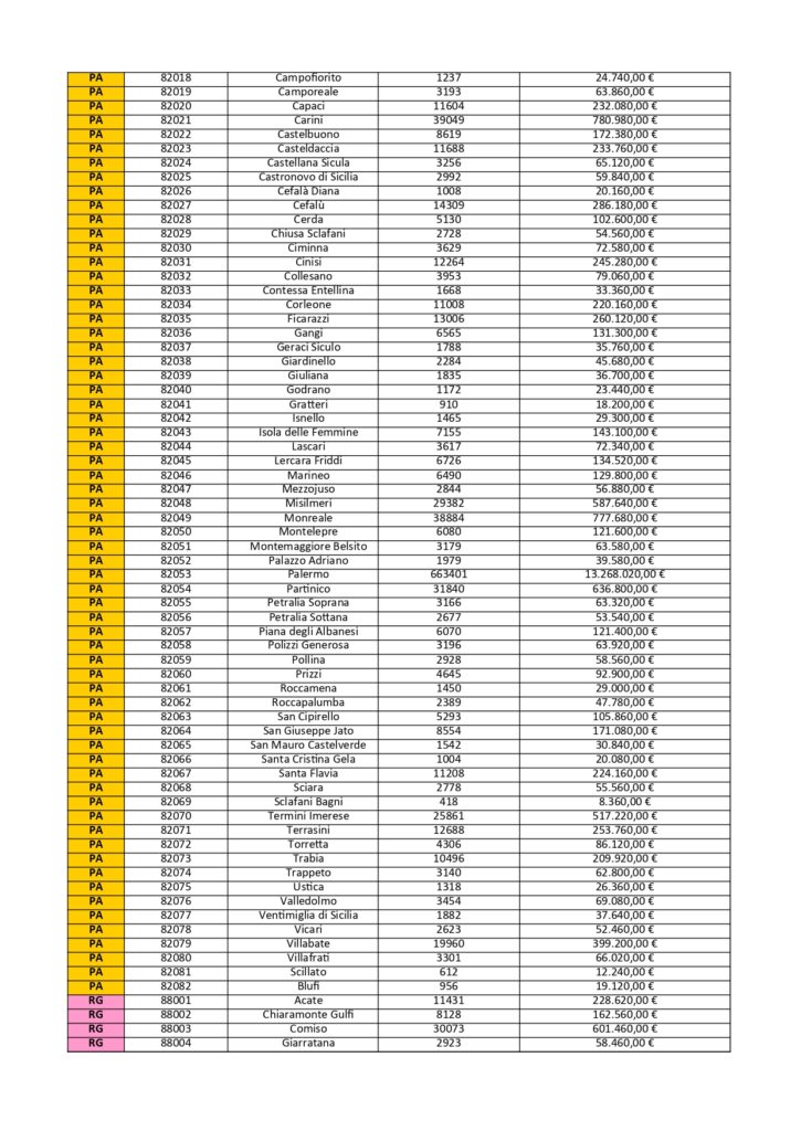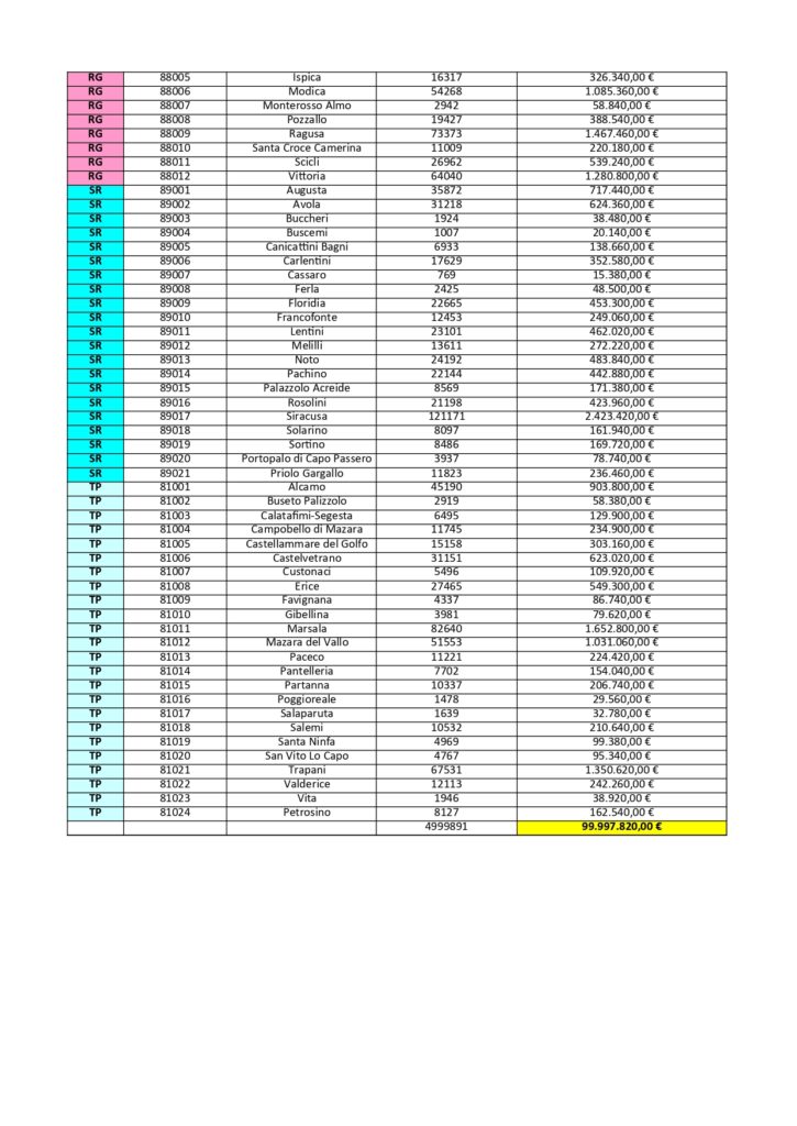 Ecco la LISTA COMPLETA CON IL DETTAGLIO DI TUTTE LE SOMME DESTINATE AI COMUNI SICILIANI: