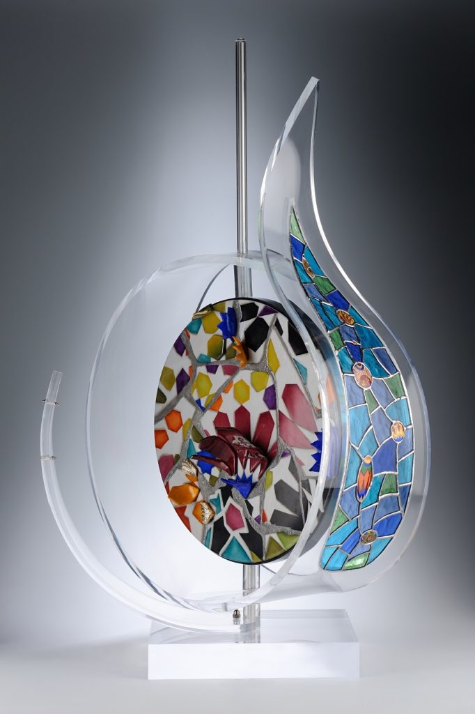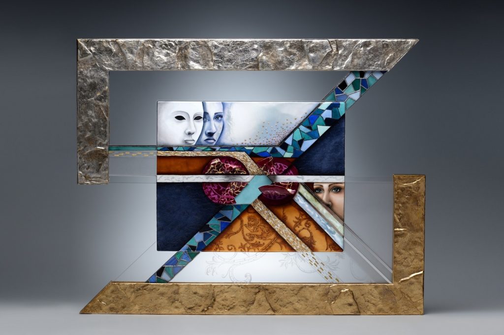 Scrive così Luigi Gattinara, direttore della Triennale di Fotografia: «Le opere dell’artista Landolfi sono un raro esempio di come materiali diversi e così sofisticati possono convivere in un’armonica composizione. Come tessere di un mosaico sovrappongono la luce alla rotondità delle forme, la preziosità dei materiali all’essenzialità acuta di certe geometrie. Leggerezza è ciò che trapela da questi innesti in un dialogo similare a vetrate rinascimentali, maestose e al tempo stesso evanescenti. La conoscenza approfondita della materia si coniuga qui perfettamente con i soggetti onirici cari all’artista».